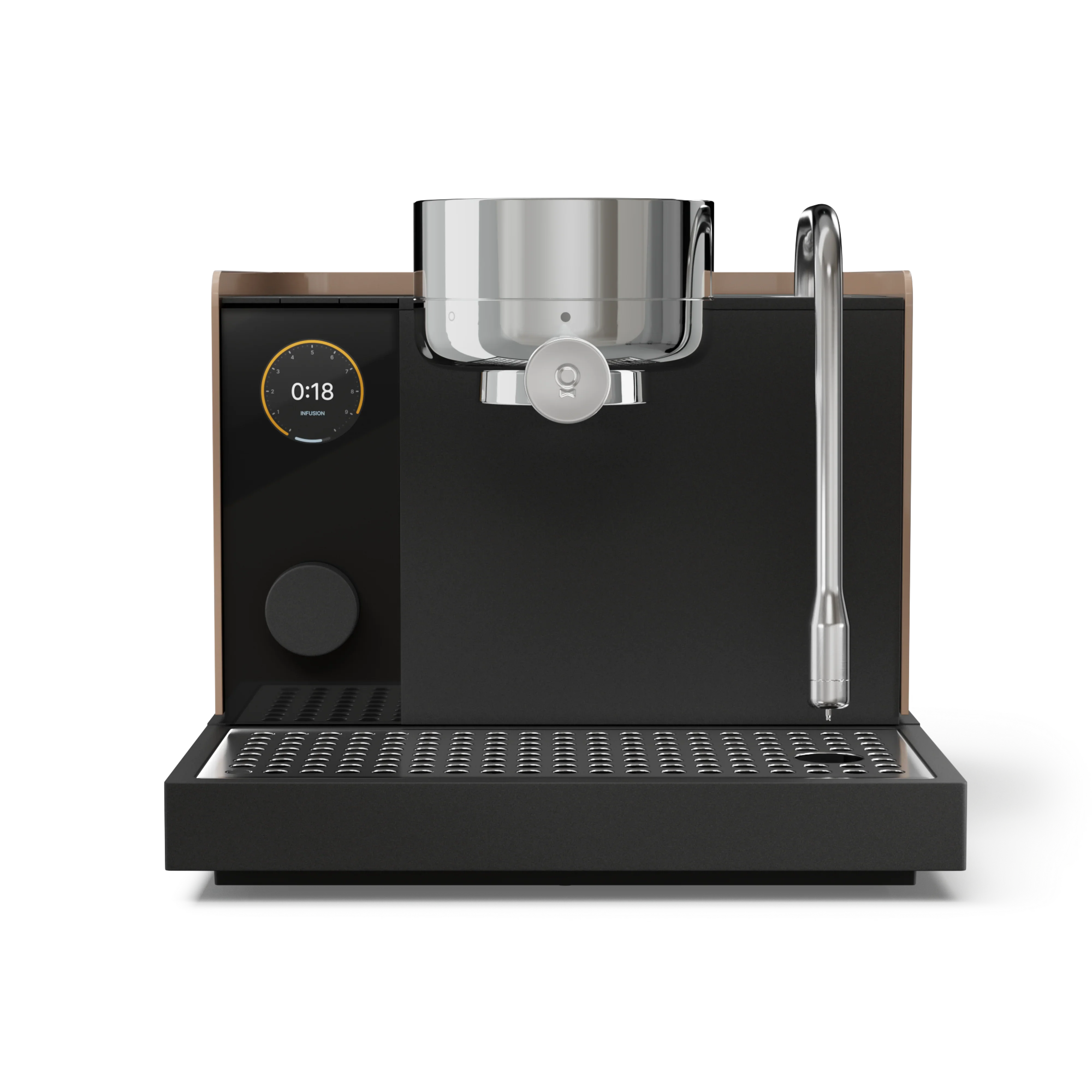 The temperature sensing steam wand auto-stops at target temperature, auto-purges after use, and can be customized for different milks.