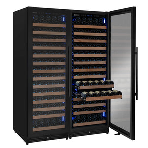 Allavino Reserva Series 326 Bottle Dual Zone 71" Tall Side-by-Side Wine Refrigerator – Black Metal Doors, French Door