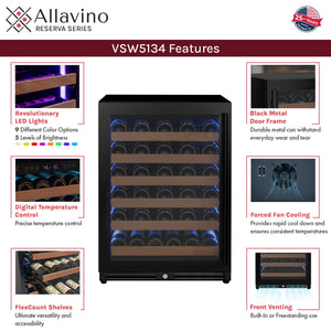 Allavino Reserva Series 51-Bottle Single Zone Built-In Wine Refrigerator Black Door · Left-Hinged